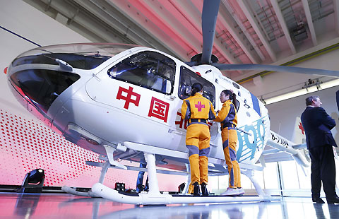 The EC135 Airbus helicopter will be China's first fully-equipped air ambulance after the official handover ceremony in Donauwoerth, Southern Germany.