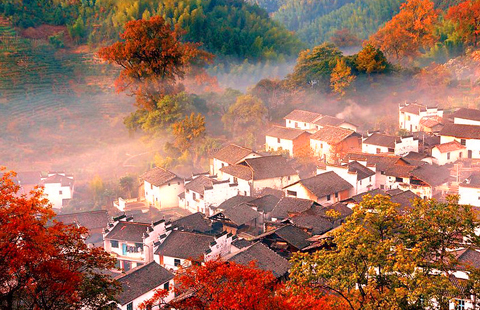 A model wearing a 4,100-meter-long wedding dress in "Ziyixiangxun valley" in Chengdu, Sichuan province on Sept 24, 2014. The large tailing dress costs 40,000 yuan ($6520).