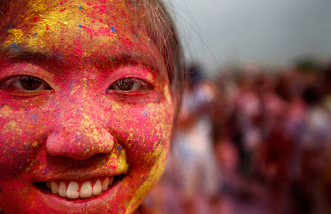 Inspired by the Hindu Holi festival, participants take part in a five-km (3.11-mile) run dotted with locations where coloured powders are thrown over them.