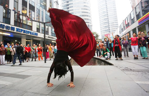 Chen Ailian, a 75-year-old dancer, leads a crowd of more than 100 middle-aged people on a square in the Sanlitun area of Beijing with her professional moves.