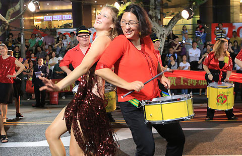 Dancers show their moves on the Huaihai Road in Shanghai on Sept 13, 2014, as part of a float parade marking the opening of this year's Shanghai Tourism Festival.