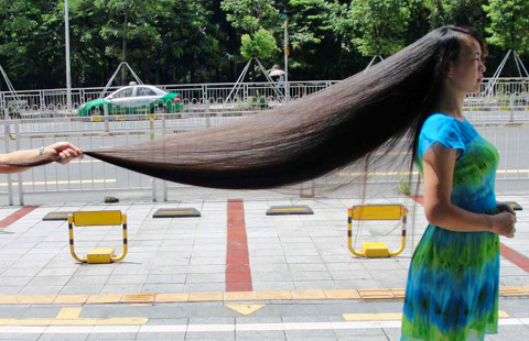 A woman has been growing the hair for 15 years and she now auctions it for a charity program of a rural school in Northwest China.