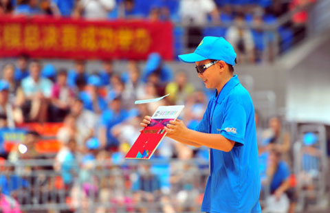 Boy steers his paper plane at model airplane final in Sanya, South China’s Hainan province, August 3, 2014. The 16th “Fly to Beijing-Fly to the space” National Model Airplane Youth Finals kicked off in Sanya, Hainan, on August 3, 2014. Some 2,000 youngsters from 42 teams are competing for more than 150 awards in 20-plus events during the three-day event.
