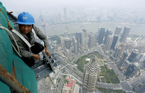 The final steel beam was installed on Shanghai's tallest building on Sunday, with the skyscraper reaching is designed height of 632 meters.