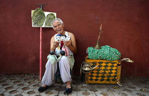 Xiao has been earning his living by performing puppet shows on streets for more than 40 years.