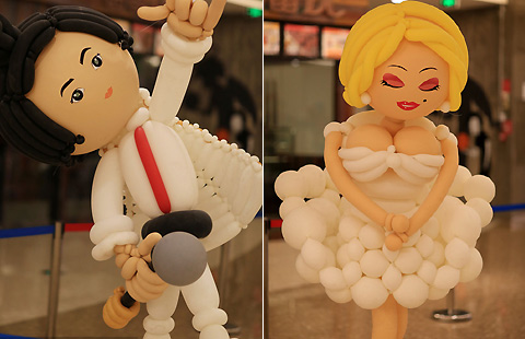To raise awareness about environmental protection, a mannequin is dressed in a wedding dress made of balloons at a shopping mall in Kunming, Yunnan province, Jan 9, 2015.