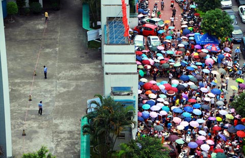 Parents of 7,000 students wait outside of a Shantou private school in Guangdong province on Tuesday, while their children take the entrance exam.