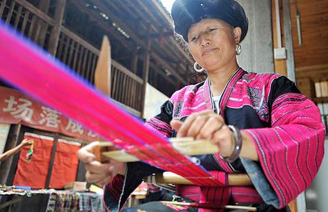 Women are busy doing embroidery in Baishapo village, Southwest China's Yunnan province on July 2, 2014. Supported by the local government, more than 1,000 women engage in the embroidery industry.