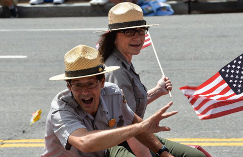 People take part in the Independence Day parade in Washington D.C., capital of the United States, July 4, 2014. The United States celebrated its 238th Independence Day on Friday.