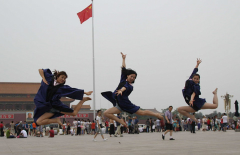 Graduates take photos on Tian'anmen Square, as many university students are using creativity on how and where to capture the perfect picture when taking graduation photos.