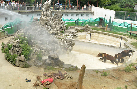 A zoo conducted emergency drills on how to save visitors who have fallen into its bear enclosure on Thursday in Chengdu, Southwest China's Sichuan province.