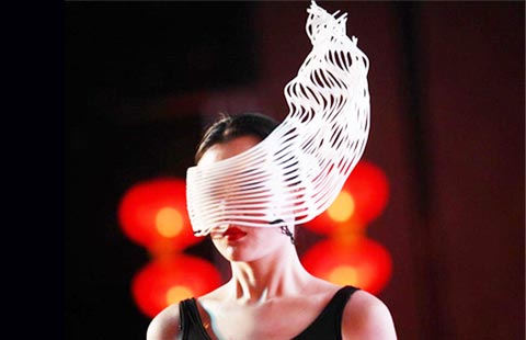 Models present pieces created by 3D printers during a fashion show in Qingdao, Shandong province.