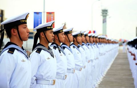 Officers and sailors from Chinese and Russian navies visited each other's ships in Shanghai on Monday as a joint exercise was set to begin in the East China Sea.