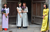 Quelques étudiantes vietnamiennes portent Ao Dai, robe traditionnelle du Vietnam à Hano?, capitale du Vietnam, le 1 novembre, 2015.