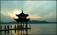 mountains shrouded in rain; Plain or gaily dressed like Xizi; West