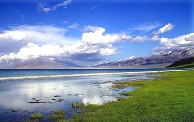 Sailimu Lake, located in Xinjiang Uygurs Autonomous Region is a fault basin at an elevation of 2,073 meters. It means "Lake on the mountain" in Mongolian language. Spring and summer are two best seasons visiting sailumu as flowers blossom.[scol.com.cn]