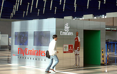 Two 61-inch plasma display screens have been set up by Emirates Airlines at
