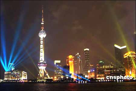 up the sky in Shanghai. Those colorful searchlights are mainly in yellow and