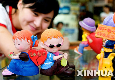 Photo taken on July 24, 2006, shows a couple of dolls in Huaibei, east China's Anhui Province. As July 7 in Chinese lunar calendar, the Chinese Valentine's Day, is drawing near, related adornments became popular in the city. The Chinese Valentine's Day, or Qixi Festival, falls on July 31 this year.