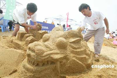 A sand sculpture contest for common people was held in Dalian, Liaoning August 5, 2006, drawing many common sand sculpture lovers.[Photo: Chinanews.cn]