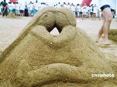 A sand sculpture contest for common people was held in Dalian, Liaoning August 5, 2006, drawing many common sand sculpture lovers.[Photo: Chinanews.cn]