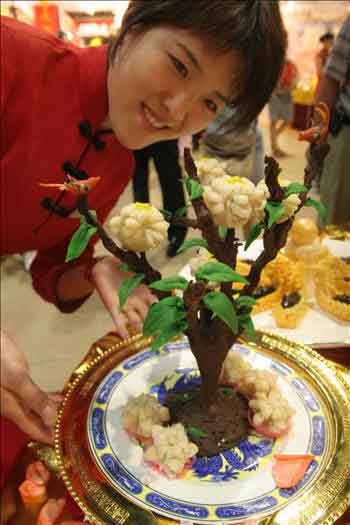 China (Beijing) Int'l Restaurant and Food Exhibition (People's Daily Online) Updated: 2006-09-06 10:53 A girl arranges a dish at a food exhibition held at the Beijing Exhibition