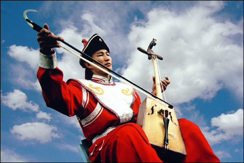 The morin-khuur or horse headed fiddle is a two-stringed national musical instrument that is registered with the UNESCO World Heritage Book.[Photo by CRI]
