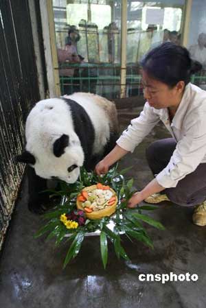 banboo leaves, fruit and so on in the zoo of Jinan, Shandong Province, Oct. 6,