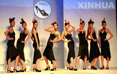 Models show Chinese-made shoes during the China International Shoes Fair in Beijing, on Oct. 10, 2006. (Xinhua Photo)