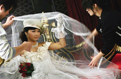 "Wedding Photos" without a groom(CRIENGLISH.com)Updated: 2006-11-16 09:57 ![]() Staff from Milan Wedding Photography Studio help Xu Xingwen with her dress during the photo shooting on November 14 in Nanjing. [Photo: Xian Dai Kuai Bao/Xinhua Net] Xu Xingwen, a 22-year-old girl from Nanjing city in eastern China's Jiangsu Province, had her "wedding photos" taken alone, at the city's Milan Wedding Photography Studio. This was the last wish of the girl, who is dying from leukemia and has decided to donate her organs after death to help save other people's lives, a local newspaper called Xian Dai Kuai Bao reports. Moved by the girl's story, Milan Studio not only took her photos for free, but also sent their best makeup artist and photographers to make Xu Xingwen the "most beautiful bride in Nanjing." |