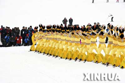 Kwanyin" dance at a local ski resort for the 23rd Harbin International Ice