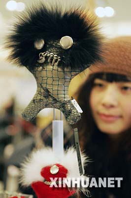 This photo, taken on December 30, 2007, shows a cell phone accessory on sale at an arts and crafts fair in Beijing. The two-day fair displayed various products handmade by local citizens.[Photo:xinhuanet]