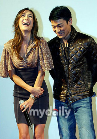 Cast members Maggie Q (L) and Andy Lau attend the global premiere of ancient Chinese war film "Three Kingdoms: Resurrection of the Dragon" in Seoul on Monday, March 24, 2008. [Photo: mydaily/ent.sina.com.cn]