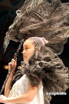Graduates from Beijing Institute of Clothing Technology show off their works on Tuesday, March 25, 2008 during the 2008 China International Fashion Week in Beijing. The new-generation designers presented 171 sets of clothes in four sections titled "rhythmic fun," "original creation," "modern city" and "artistic orient," all under the theme of "2008." [Photo: China News Service]