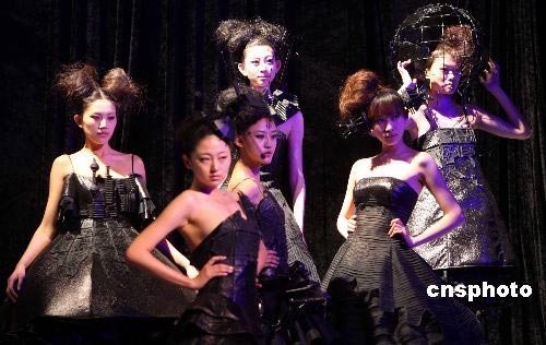 Graduates from Beijing Institute of Clothing Technology show off their works on Tuesday, March 25, 2008 during the 2008 China International Fashion Week in Beijing. The new-generation designers presented 171 sets of clothes in four sections titled "rhythmic fun," "original creation," "modern city" and "artistic orient," all under the theme of "2008." [Photo: China News Service]