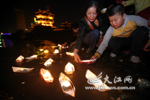 A number of paper boats with candles were put into the Ganjiang River in Nanchang, capital city of east China's Jiangxi province, reported by Jiangnan City News on Wednesday. As China's traditional Qingming Festival, or Tomb Sweeping Day, is coming, local residents in the city's Zhuang Yuanqiao community put these paper boats in the river to commemorate and honor their ancestors and lost relatives. [ jxnews.com.cn]