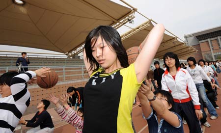Students play stress-relief games at Yucai School in Shenyang, capital of northeast China's Liaoning Province, May 10, 2008. [Photo: Xinhua]