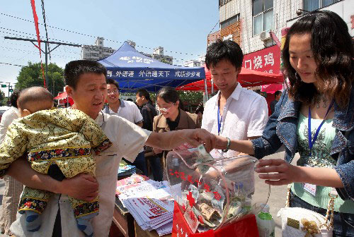 Citizens in Zhengzhou donate money for quake-hit victims in Sichuan Province on Tuesday, May 13, 2008. [Photo: Xinhua]