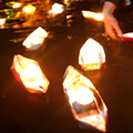 Paper boats with candles to express grief