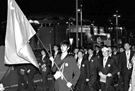 The Chinese delegation, led by Bao Chunlai, arrives during the opening
