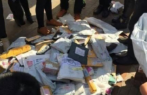 Photo taken on Feb. 27, 2015 shows terracotta warriors wrapped in cling film for color fixing at the Emperor Qinshihuang's Mausoleum Site Museum in Xi'an, capital of Northwest China's Shaanxi province. According to experts at the Museum, wrapping terracotta warriors, a set of lifesize ancient Chinese army sculptures from the 3rd century B.C., in cling film has been in routine use for protection of remnant painting on these cultural relics. [Photo/Xinhua]