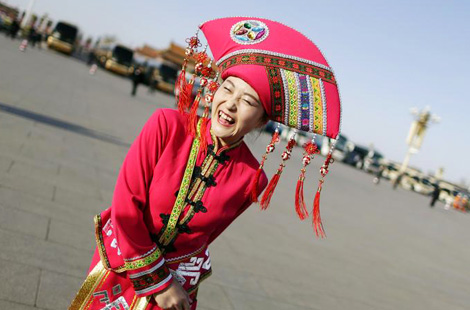 A spectator watches the works at a photo exhibition named "Glimpses of Yunnan Province of China in the eyes of Indian photographers" in Kolkata, capital of India's West Bengal state, March 7, 2015. A photo exhibition featuring more than 100 works of six Indian photographers' 10-day trip to China's Yunnan province was held in Kolkata recently. Organised by the Consulate General of China in Kolkata and local Mala Mukerjee Gallery, the photo exhibition aims to let more Indian spectators know more about the Chinese life and culture.[Photo/Xinhua] |