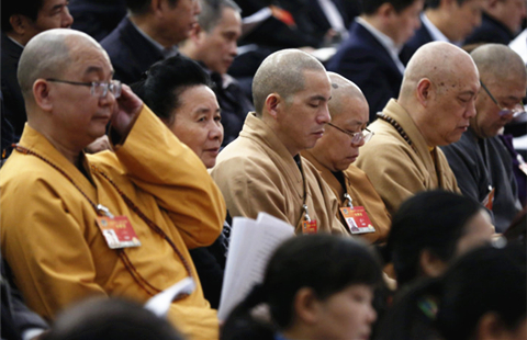 A technician adjusts the position of the strings on the zither. [Photo/Xinhua]