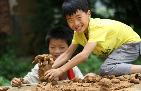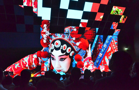 A Tibetan Buddhist monk makes a mandala with sand during a show of intangible cultural heritage from Regong art of Qinghai province in North China's Tianjin municipality, May 30, 2015. The creation of a sand mandala follows strict rules of proportion, structure, and content. Regong art includes paintings (murals and scrolls called "thangka" in Tibetan), clay and wooden sculptures, barbola, color paintings on buildings, patterns, and butter sculptures. [Photo by Zhang Daozheng/China News Service]