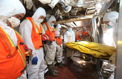 Folk artists perform Nuo dance in Sancha village, Enshi city, central China's Hubei province, June 5, 2015. Nuo Opera, performed with masks, is an ancient folk drama which is still popular in many Chinese provinces along the Yangtze River. In Enshi, the kind of Nuo Opera performed by the local Tujia people serves as both secular entertainment and a votive ritual. Enshi Nuo Opera is now a listed national intangible cultural heritage in China. [Photo/Xinhua] |