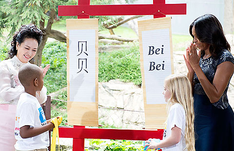 Craftsmen Li Shuanglu (left) and Wu Laishun (right) try to beat a piece of steel bar flat with a hammer in making crewel needles in Dayang township of Zezhou county, North China's Shanxi province, Sept 24, 2015. Pei Xiangnan, 66, is the eighth successor of the Dayang handmade crewel needles, which was listed as a provincial intangible culture heritage in 2006. Despite as an inheritor, Pei is actually a rural doctor and usually has no time to make needles. He has to utilize his weekends or holiday time to perform his craftsmanship for visiting tourists. The making of crewel needles needs 72 steps and there are only less than 10 people able to make crewel needles by hand in the town. To avoid extinction of the craftsmanship, Dayang township tries a protective development in which hand-making of crewel needles is promoted as a special tourism project. [Photo/Xinhua] |