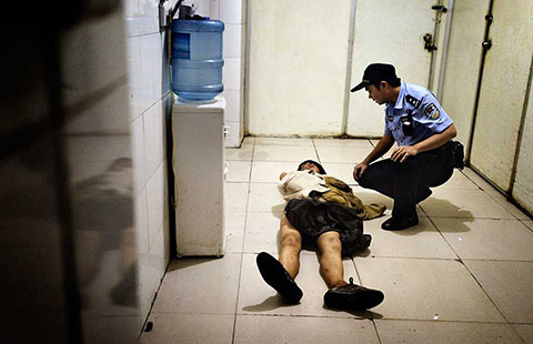 Calligrapher Wang Bo writes Tao Te Ching, a Chinese classic text, on a stone in Chengdu city, capital of Southwest China's Sichuan province, Jan 14, 2016. Wang has finished writing Tao Te Ching on 81 stones after three years and wearing out 40 writing brushes. He says he tried to combine the shape, texture and color of stones with calligraphy skills in the creation. [Photo/China News Service]