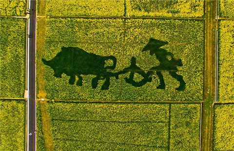 Farmers hold a ceremony to mark the start of spring farming in Lhasa, Southwest China's Tibet autonomous region, March 16, 2016. The day, the eighth day of the second month in the Tibetan calendar, is said to be an auspicious time for starting agricultural work. In the ceremony, farmers threw tsamba, the basic food of Tibetans into the air, ploughed the field with a tractor and performed other rituals to pray for a good harvest. [Photo/China News Service]
