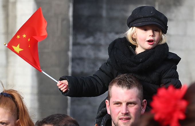 People watch the parade celebrating the Chinese Lunar New Year in Dinant, South Belgium, Jan 29, 2017.[Photo/Xinhua]