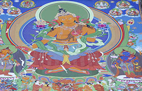 Thangka adorns hillside during Shoton